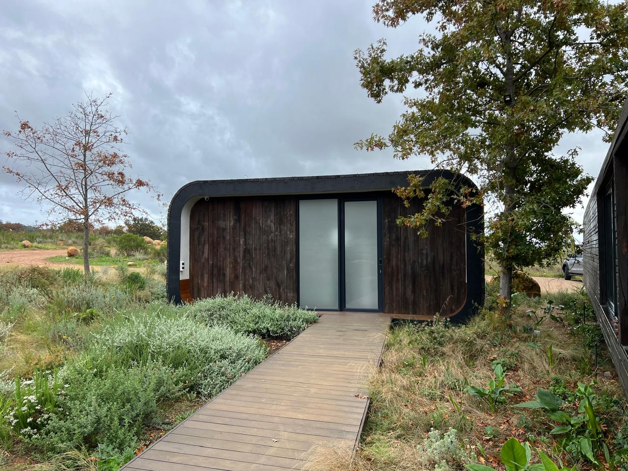Forget concrete; our structures boast a minimalistic approach, with Saligna wood, an invasive tree, taking centre stage. Through stabilising processes and the use of natural oils, we breathe life into this wood, transforming it into a canvas of desired hues while treading lightly on the Earth. The backbone of our pods is forged with mild steel, clad in materials that dance with the elements, creating an impressive aesthetic while bowing to the principles of eco-friendliness.